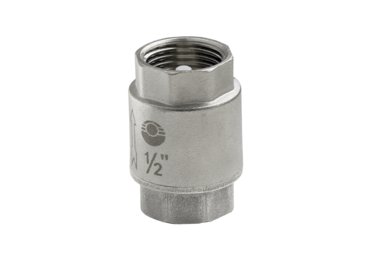 Латунный пружинный обратный клапан с никелевым покрытием устанавливается на гидравлических трубопроводных сетях. Транспортируемая среда может двигаться только в одном направлении, которое указано стрелкой на корпусе клапана. Резьба – внутренняя, цилиндрическая трубная по ГОСТу 6357-81. Фитинг рассчитан на рабочее давление (PN) 2,5 и 4,0 МПа и температуру транспортируемых сред от -20 до +90°С. Преимущества: -Монтаж в любом положении. -Отсутствие трущихся поверхностей.