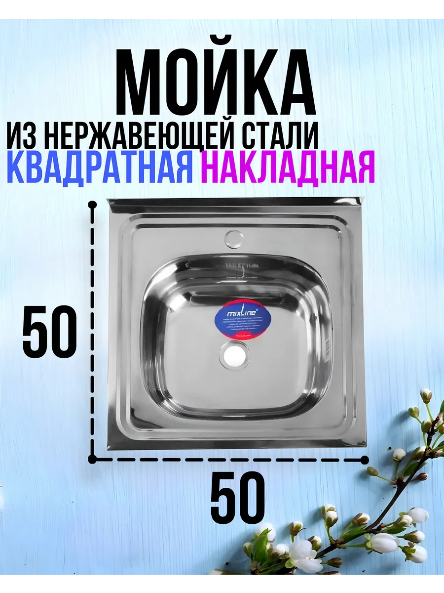 Мойка для кухни нержавейка накладная 50 на 50 см