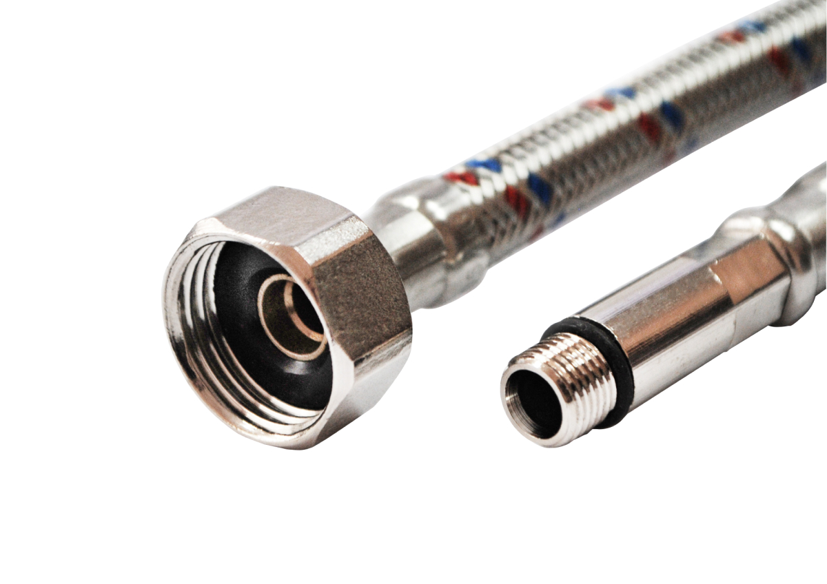 Гибкая подводка VALFEX предназначена для присоединения к трубопроводам приборов водоснабжения, отопительного, сантехнического оборудования, бытовой техники, использующей воду. Подводки гибкие для воды VALFEX рассчитаны на эксплуатацию при рабочем давлении 10 бар (максимальное давление – 20 бар) и температуре от 1 до 100 °C. Накидная гайка, пресс-гильзы и оплетка подводок изготовлены из нержавеющей стали, ниппель – из качественной сантехнической латуни, шланг – из этиленпропиленового каучука EPDM. Срок службы гибкой подводки VALFEX - 10 лет.
