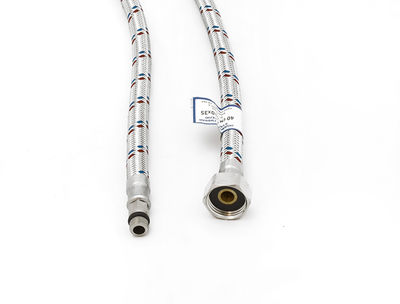 Гибкая подводка 12 мм представляет собой шланг для воды из EPDM (нетоксичный каучук) оплетенный нитью из нержавеющей стали. Оплетка из высококачественной нержавеющей стали AISI 301 состоит из 7 нитей, толщиной 0,18 мм каждая. Оплетка идет с вкраплениями красных и синих нейлоновых нитей, характеризующих горячее и холодное водоснабжение. Внутренний шланг и прокладка из нетоксичной резины EPDM.