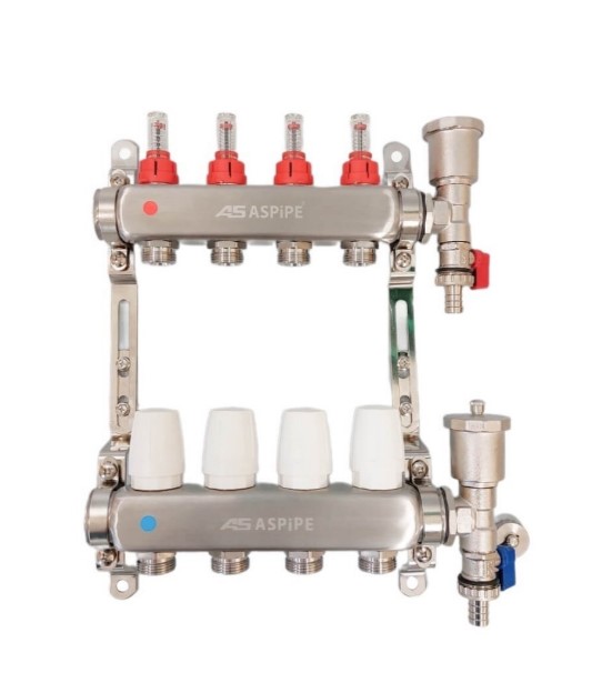 Коллекторная группа НЕРЖ с расходомером 1" х 6 выход. с кол тройниками (3/5 шт)