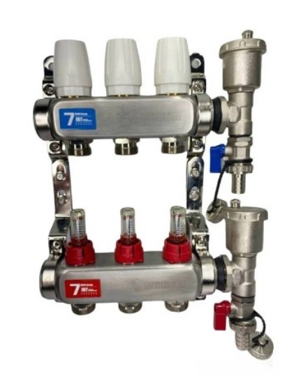 Коллекторная группа НЕРЖ с расходомером 1" х 3 выход. БЕЗ КРАНОВ (5шт)