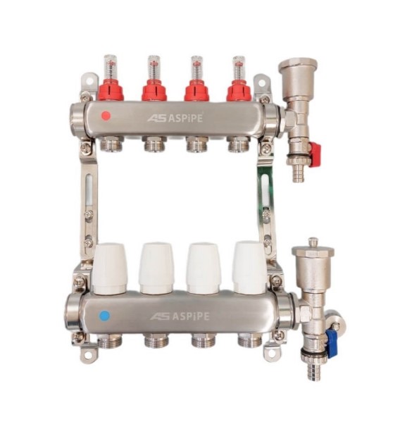 Коллекторная группа НЕРЖ с расходомером 1" х 7 выход. с кол тройниками (3/5 шт)