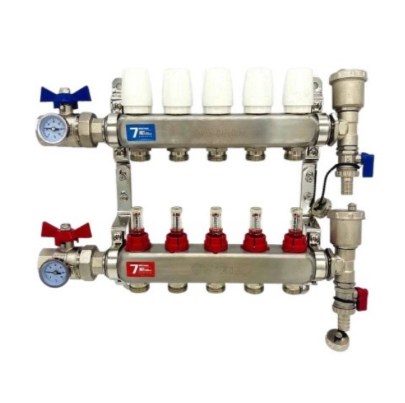 Коллекторная группа НЕРЖ с расходомером 1" х 5 дренаж. кр. воздух. VIEIR VR113-05A РК