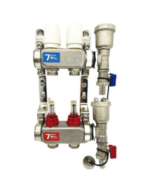 Коллекторная группа из нержавеющей стали с расходомером, оснащена 1-дюймовым подключением и 2 выходами. В комплект входят 5 штук. Обеспечивает точное измерение расхода воды и равномерное распределение по линиям, при этом не включает краны для управления потоками, что идеально подходит для систем с автоматическим регулированием или подключением по необходимости.