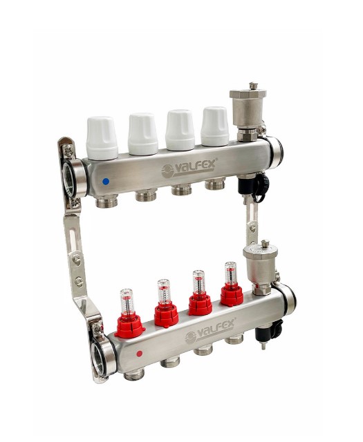 Коллекторная группа НЕРЖ с расходомером 1" х 9 выход.