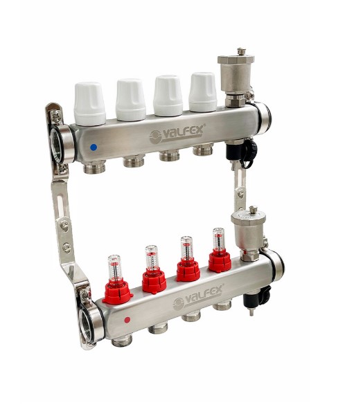 Коллекторная группа НЕРЖ с расходомером 1" х 12 выход.