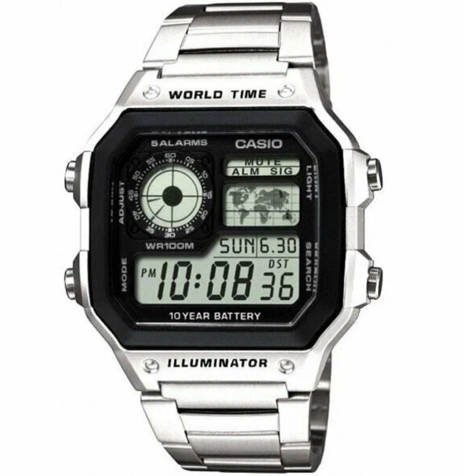 Цифровые часы CASIO AE-1200WHD-1A сочетают современный дизайн с множеством функций, включая мировое время, будильник и таймер. Надежные и функциональные, они отлично подойдут для активных людей и любителей технологий.